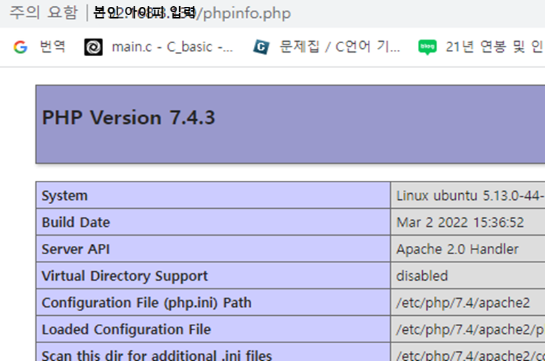 윈도우에서 ip주소/phpinfo.php 로 접근해 제대로 작동하는지 확인하면 되는데, Ubuntu 환경에서 localhost/phpinfo.php