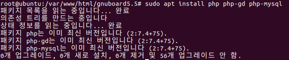 php 구동에 필요한 것들은 한번에 install 했습니다. 총 3개의 패키지가 다운로드 됩니다.