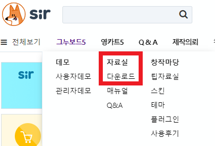그리고 그누보드를 다운로드해야 하는데, 위 링크를 타고 들어가시면 자료실 - 다운로드 메뉴가 보입니다.