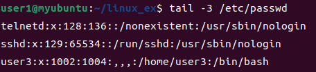 사용자 계정 삭제를 위해 user3 을 새로 만들었습니다. 해당 계정과 관련 디렉터리를 함께 삭제해보겠습니다.