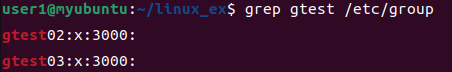 위와 같이 groupadd로 gtest02를 만들고 grep을 통해 /etc/group 을 검색해봤습니다.