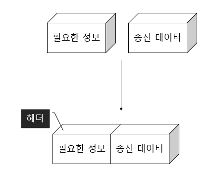 우리가 데이터를 전송할 때에는 데이터만 딸랑 이동하는 것이 아닙니다. 데이터를 전송할 때에는 앞부분에 "전송에 필요한 정보" 를 붙여서 보냅니다. 이를 우리는 헤더라고 부릅니다. 헤더에는 전송에 필요한 정보도 있지만, 데이터를 전달받을 상대방에 대한 정보도 같이 들어있습니다.